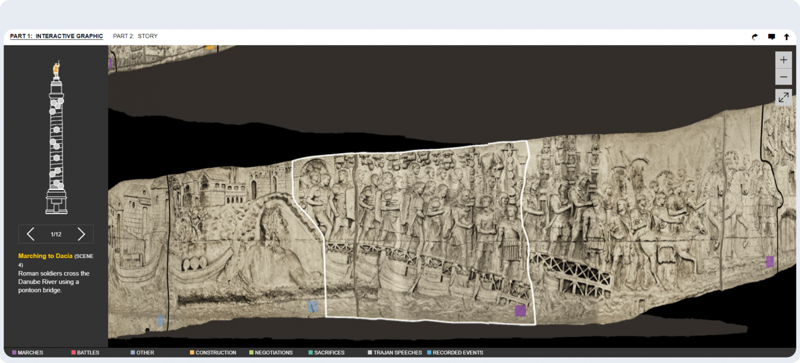 На сайте знаменитой компании вы можете подробно ознакомиться с помощью интерактивной графики с одним из самых известных памятников Древнего Рима — колонной Траяна.