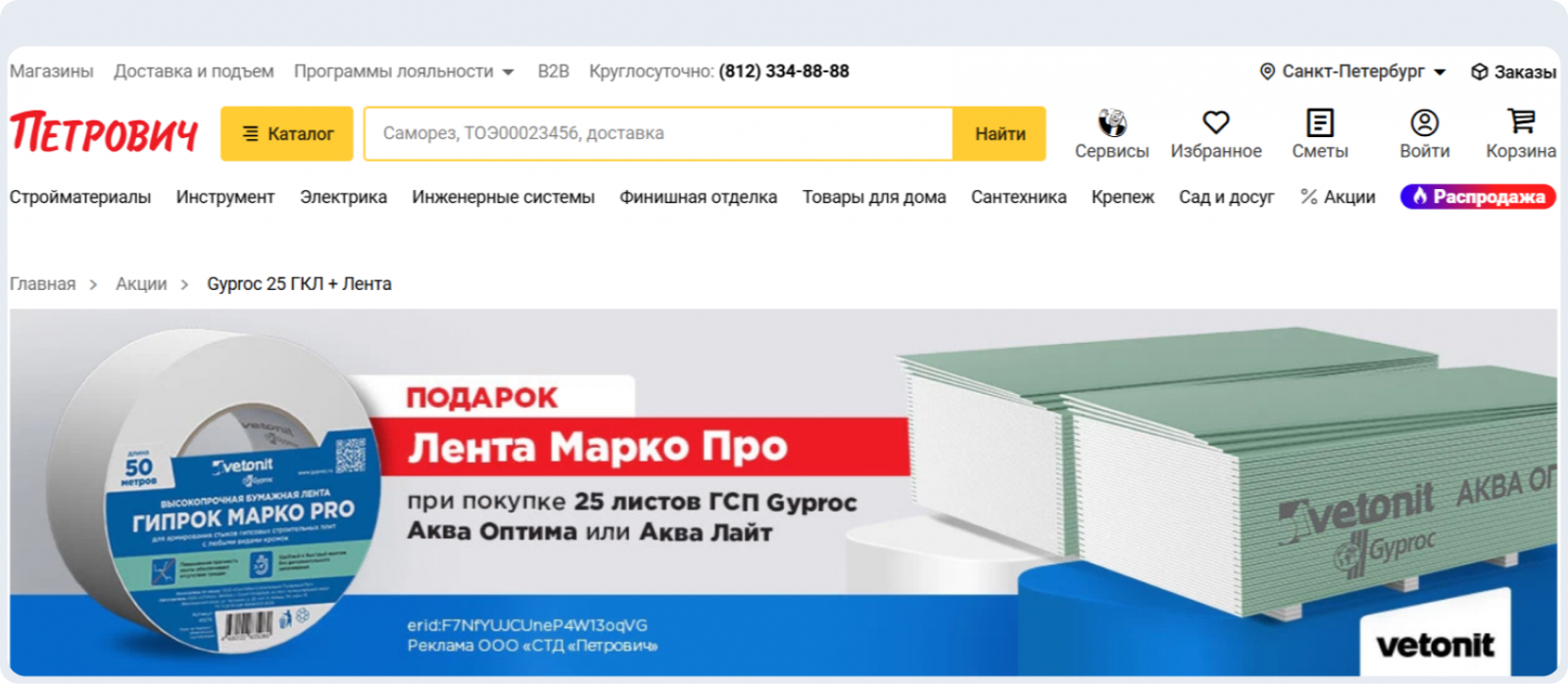 В данном случае первой строкой указан уникальный идентификатор — токен, это отлично. Далее, слово «Реклама» и наименование рекламодателя — ООО «СТД Петрович».