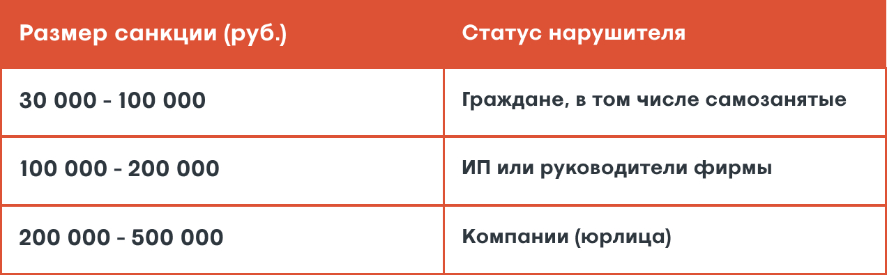 Кстати, о размерах санкций. Для владельца сайта или блога при размещении рекламы без маркировки или с некорректной маркировкой штраф по ст. 14.3 КоАП составит от 30 000 до полумиллиона рублей. Более точную информацию смотрите в таблице.