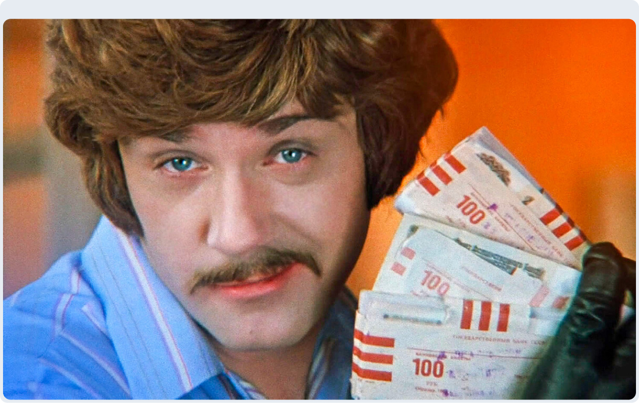 Кстати, интересно, что в СССР коммерции как таковой не существовало, однако товары и услуги все равно продвигались. Например, шоколад «Аленка» в «Кавказской пленнице» (1967) или знаменитое «Храните деньги в Сберегательной кассе!» из фильма «Иван Васильевич меняет профессию» (1973).