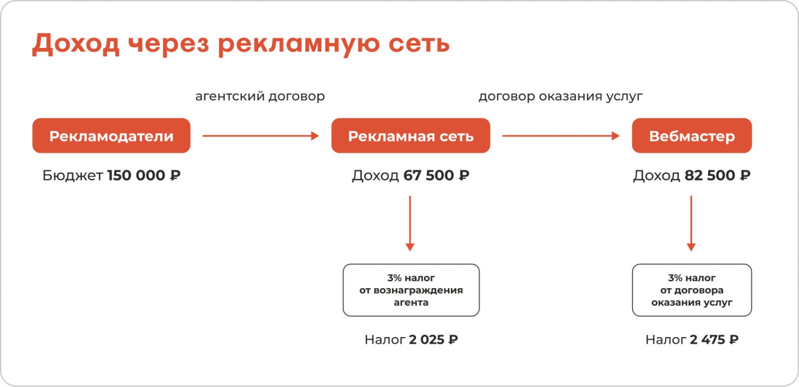 Обратите внимание, что сами рекламодатели налог не платят, кроме случаев, когда заказывают интеграцию у иностранного агентства, ориентированного на Россию. Тогда рекламодатель выступает налоговым агентом и удерживает проценты с вознаграждения.