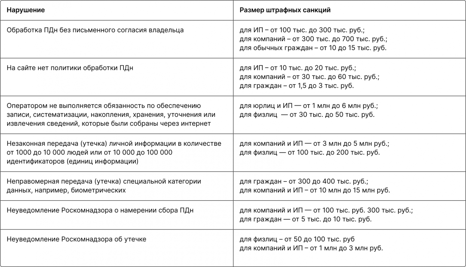 Отдельная история — обработка персональных данных. Каждый оператор ПДн обязан выполнить ряд действий, чтобы избежать штрафов и утечек информации о посетителях сайта. Важно правильно оформить политику конфиденциальности и обработки данных, корректно настроить формы на сайте и подать уведомление в Роскомнадзор. Все эти шаги мы подробно разобрали в отдельной статье на Составе. Обязательно ознакомьтесь с ней, чтобы заранее закрыть юридические риски.