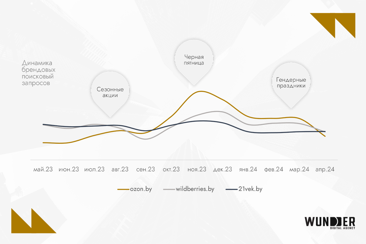 Категории товаров могут иметь разную динамику спроса у каждого отдельного ритейлера. Однако ситуативные акционные периоды (международные праздники, «Черная пятница», сезонные скидки) создают значительные всплески общего потребительского спроса по интернет-магазинам.