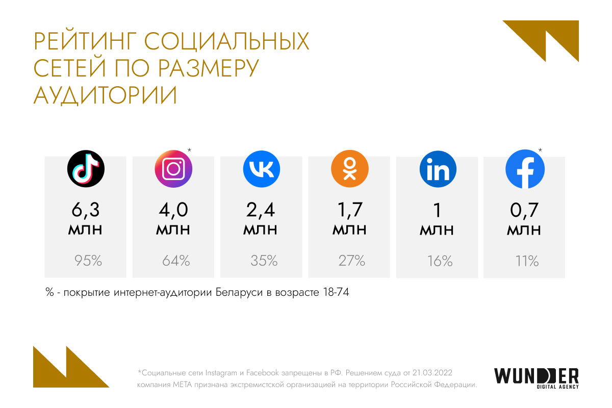 В 2025 году Беларусь продолжает активно развиваться в digital-среде, где TikTok и YouTube — основные платформы для взаимодействия с аудиторией. В то же время мультиканальность становится стандартом: пользователи активно переключаются между различными каналами и устройствами, что требует от брендов гибкости и комплексного подхода для эффективной коммуникации и вовлечения.