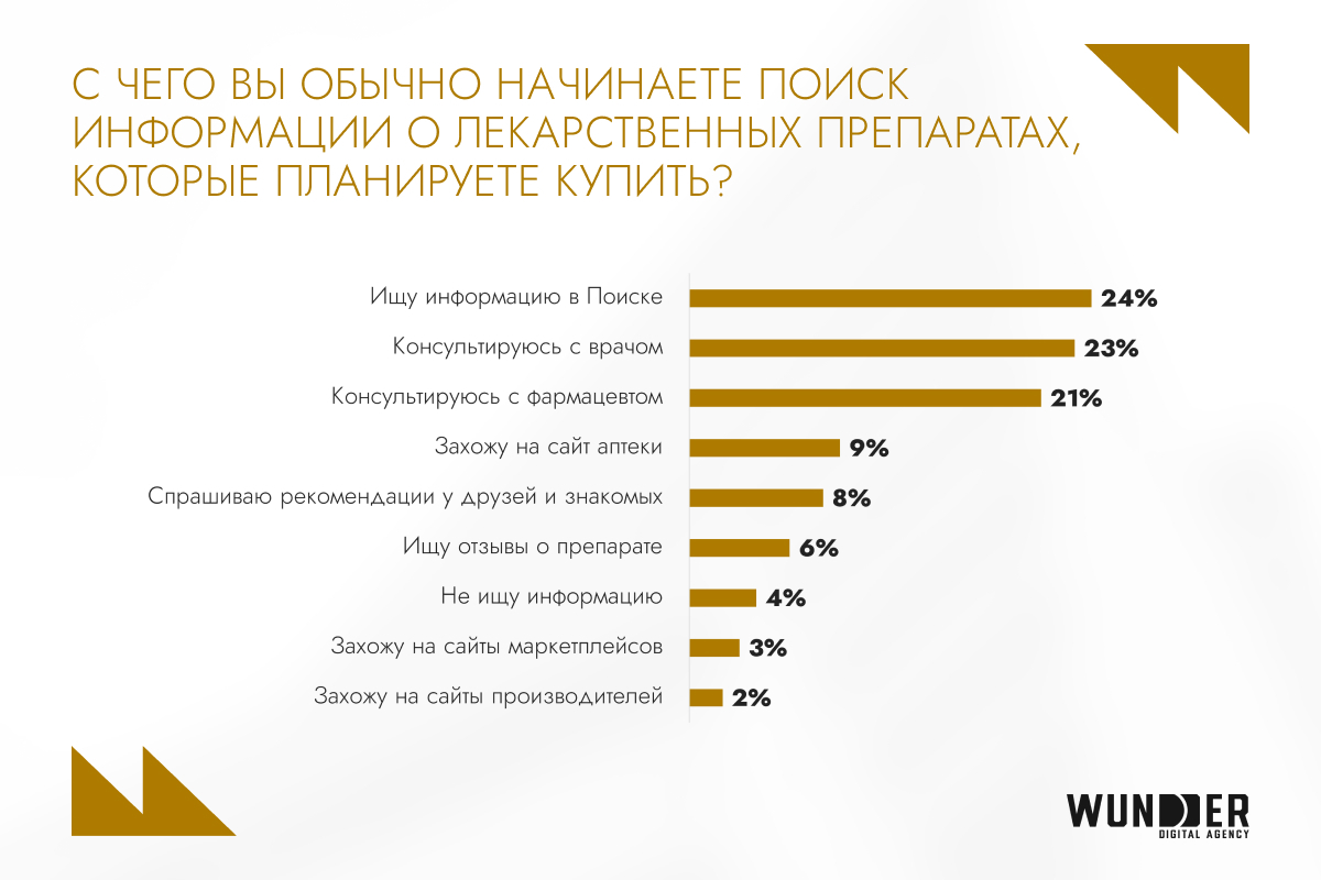 В топе запросов – витамины и БАДы, обезболивающие, антибиотики, а также препараты для лечения глаз и ЖКТ. Поиск становится одним из главных источников информации наряду с советом врача или фармацевта. Поэтому брендам крайне важно обеспечивать максимальную видимость в поисковых системах.