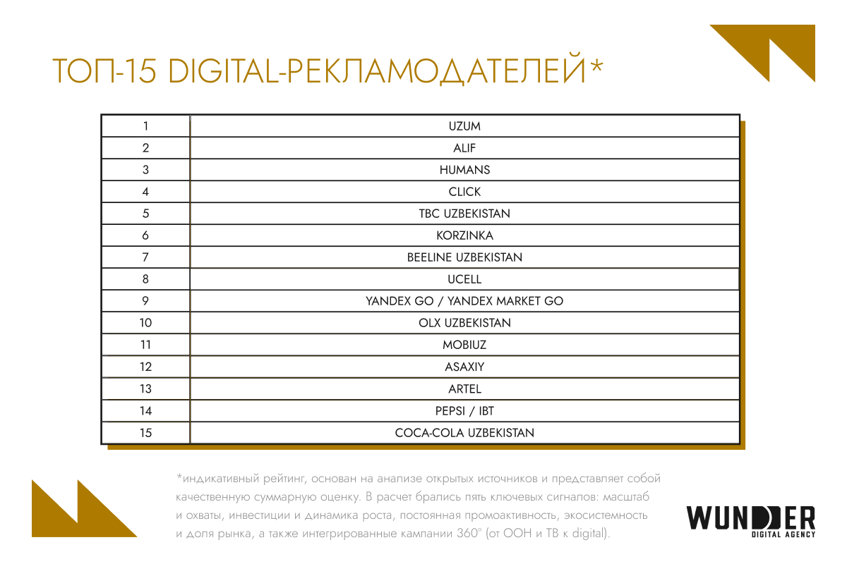 Wunder Digital — № 1 в Узбекистане среди агентств по интернет-маркетингу (Рейтинга Рунета 2025).
