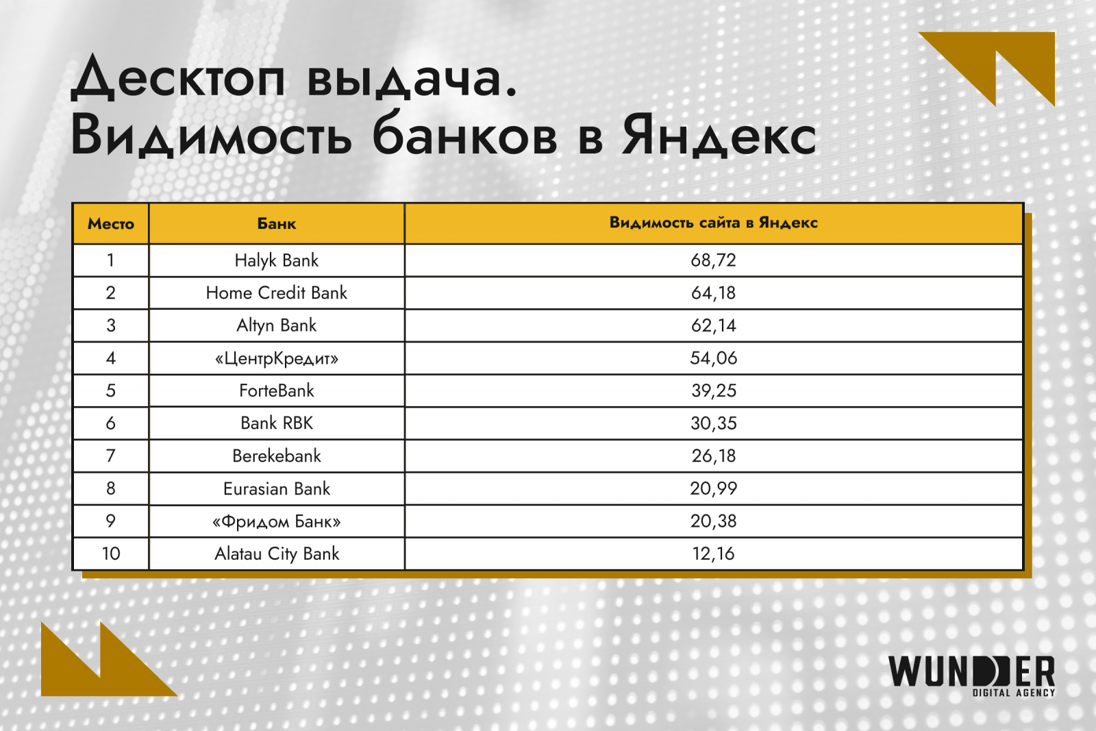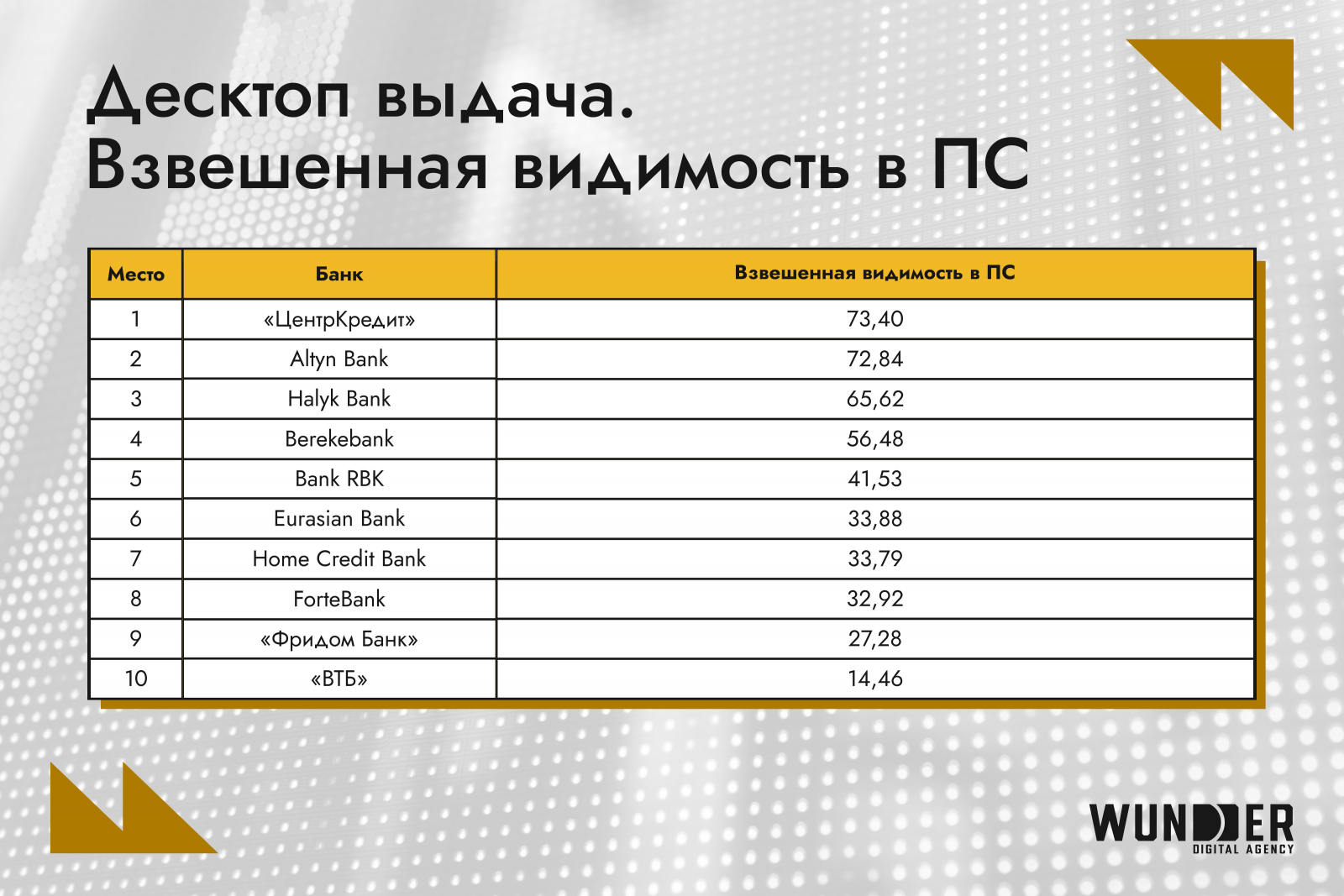 В обновленном исследовании инновационный digital-хаб Wunder Digital проанализировал видимость 18 крупнейших банков Казахстана сразу на двух типах устройств – десктопах и смартфонах – и сравнили, как меняются позиции игроков. Такой подход поможет им понять, где именно происходит просадка, чтобы точечно усилить слабые места.