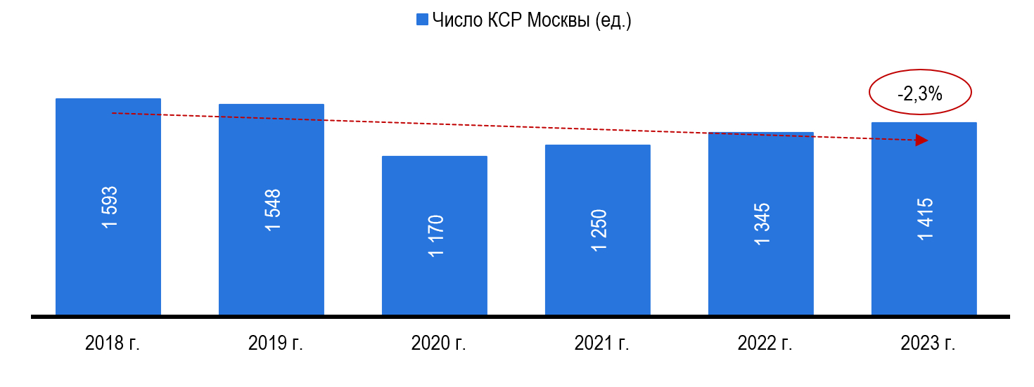 С 2018 года после взрывного роста предложения отрасли гостеприимства в столице, связанного с проведением ЧМ-18, наблюдается постепенное сокращение классифицированных объектов (в среднем на 2,3% ежегодно).