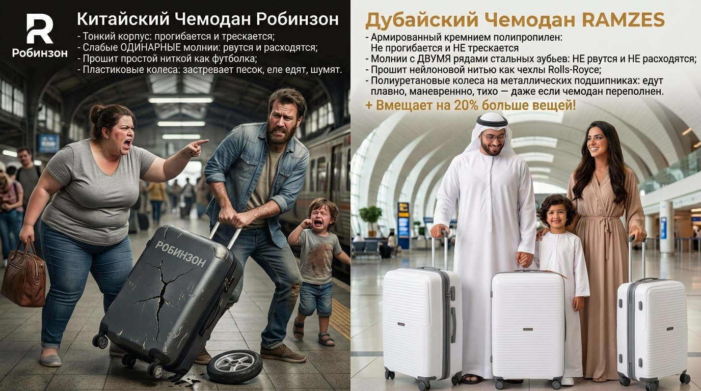 Итог: Робинзон остался на острове, а Рамзес летит в бизнес-классе! Выбираем комфортное качество, которое прослужит десятилетие - Дубайский чемодан RAMZES