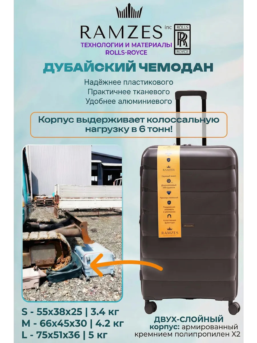 Эйоу! Это Миха Шейх! Официальный импортер тех самых лучших дубайских чемоданов RAMZES (официальный сайт RAMZES для импортеров) в России. В этом материале — честное сравнение Ramzes и Robinson: экстремальный краш‑тест — проезд 6‑тонного экскаватора по чемоданам стоимостью 174 000 ₽. Оцениваем по пяти ключевым параметрам