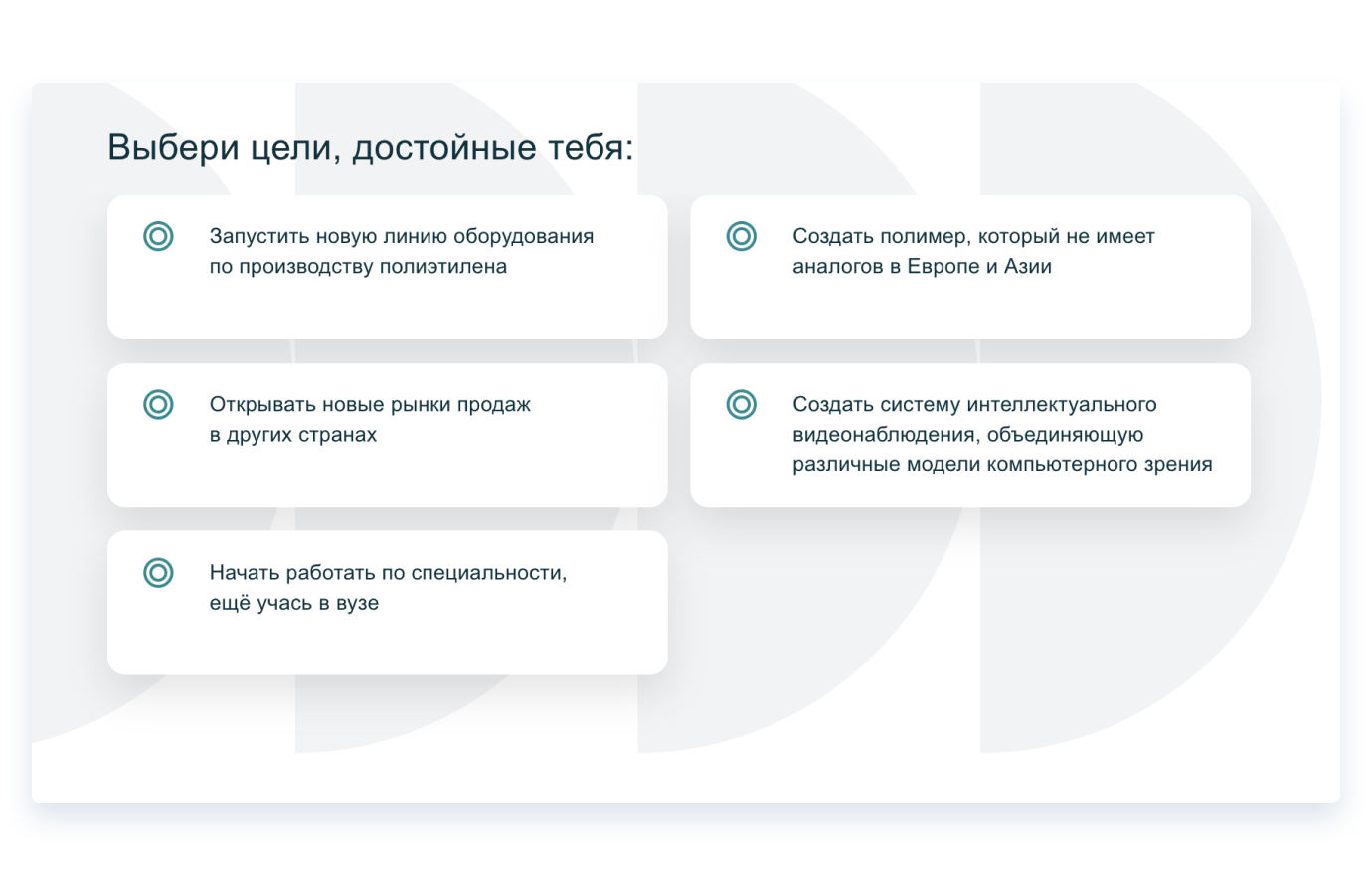 Мы проанализировали все плюсы, минусы и решили не делать отдельный спецпроект. В этот проект хорошо ложилось новое EVP со слоганом «Цели, достойные тебя». Человек в процессе игры подспудно достигал своей цели и видел, что ему может предложить компания.