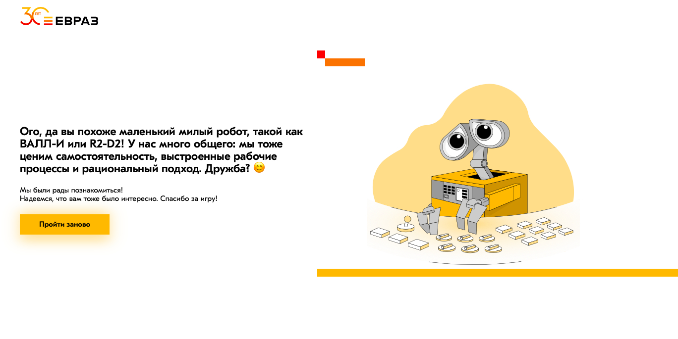 Причём неправильных ответов, как можно догадаться, нет. Любой выбор — это шаг навстречу ЕВРАЗу, который в конце может вывести на путь дружбы и сотрудничества.