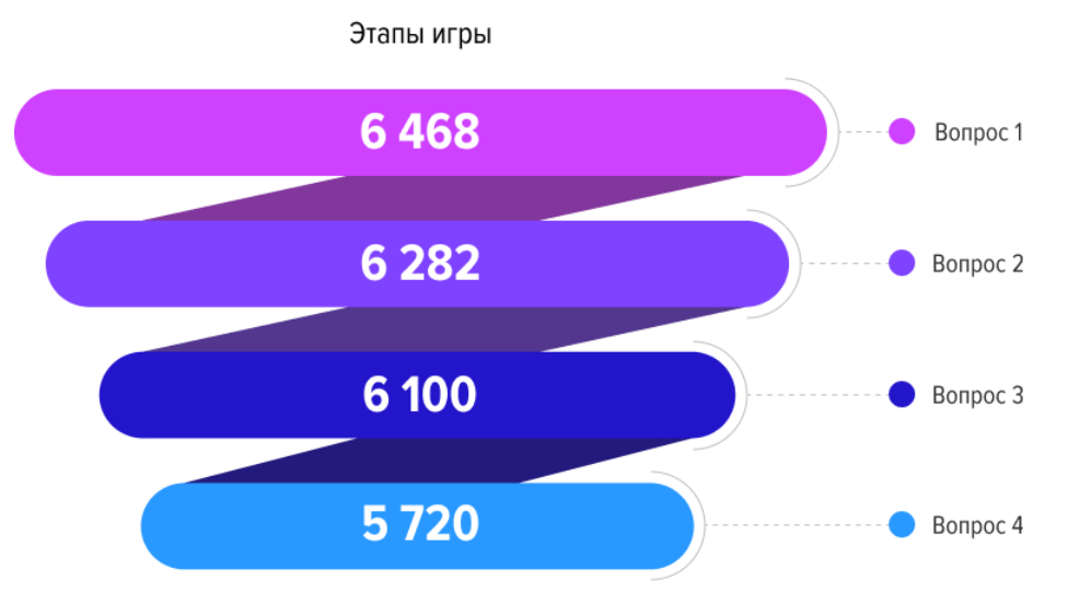 ✅ 19 410 уникальных пользователей зашли на страницу игры; ✅ 7 215 человек запустили активность; ✅ 5 720 из них дошли до конца.