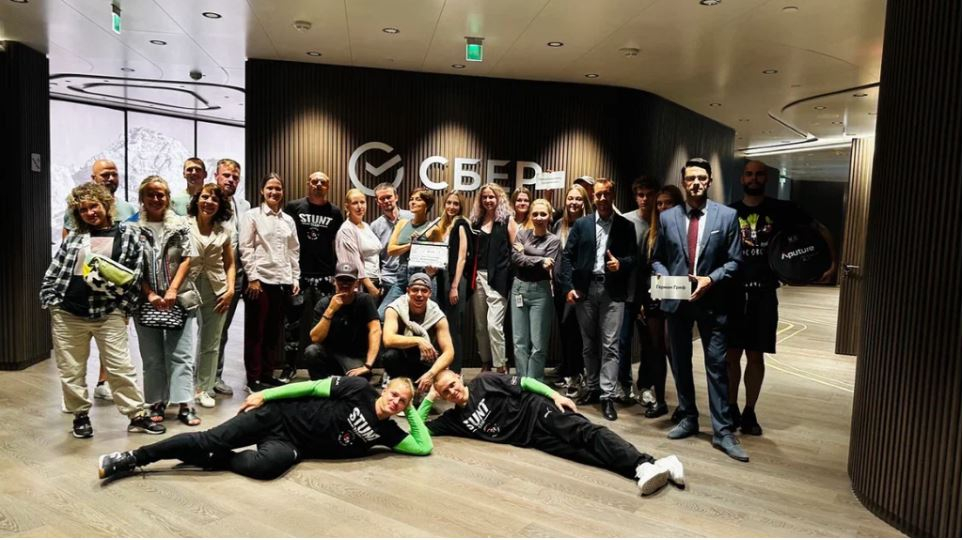 В кадре все прыжки, перевороты, сальто и прочие кульбиты смотрятся молниеносно и фантастически. Для этого за кадром каждый трюк понадобилось проработать и отрепетировать отдельно — он должен был быть зрелищным, но безопасным для самого каскадёра и тех, кто рядом с ним. Всё-таки события разворачивались в штаб-квартире Сбера, а не на специальной площадке для рискованных комбинаций в воздухе и на земле. Поэтому примерно за неделю до съёмок команда проекта устроила генеральную репетицию с участием постановщиков трюков, их исполнителей и съёмочной группы. Держа в голове план офиса, они попытались предусмотреть лучшие точки для манёвров и понять, потребуется ли для этого дополнительное оборудование.
