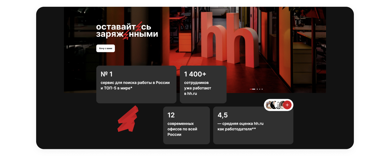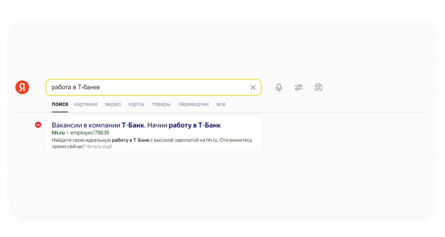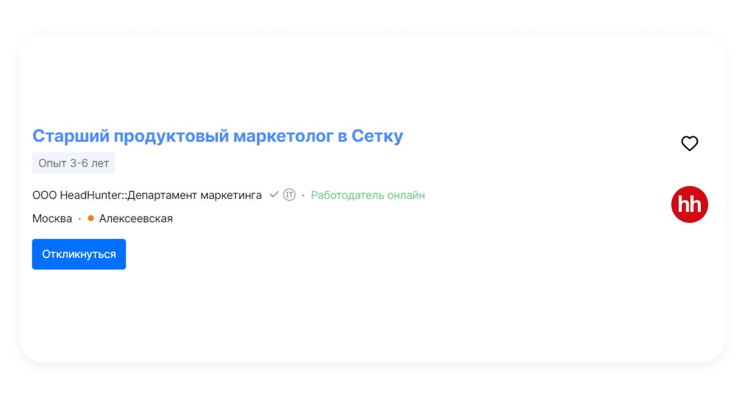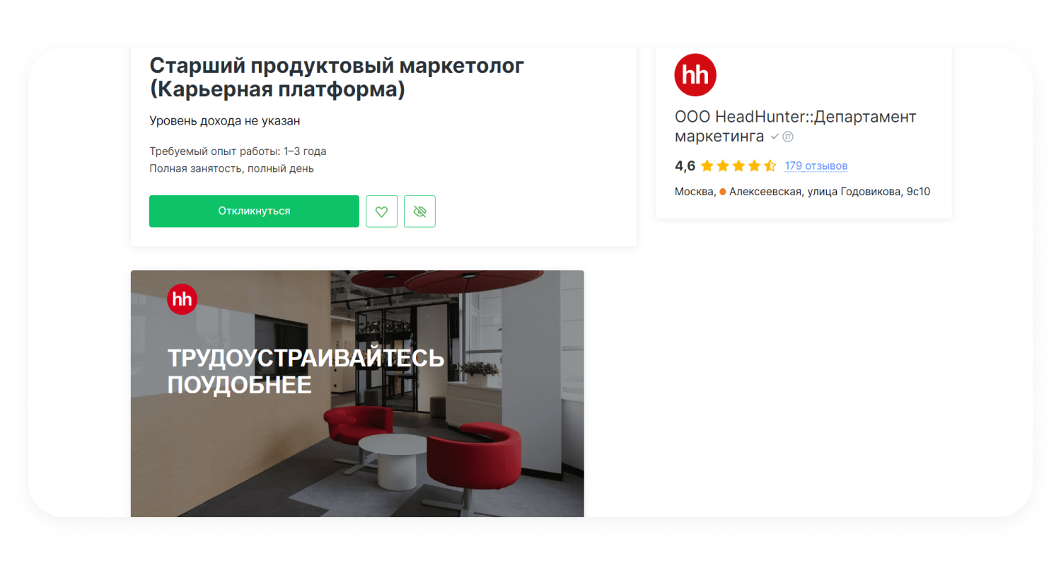 Получая достаточно информации о компании на её странице, соискатели не переходят на сторонние ресурсы и остаются на hh.ru. Результат — пользователи не отвлекаются, не теряют вакансию и не забывают оставить отклик.