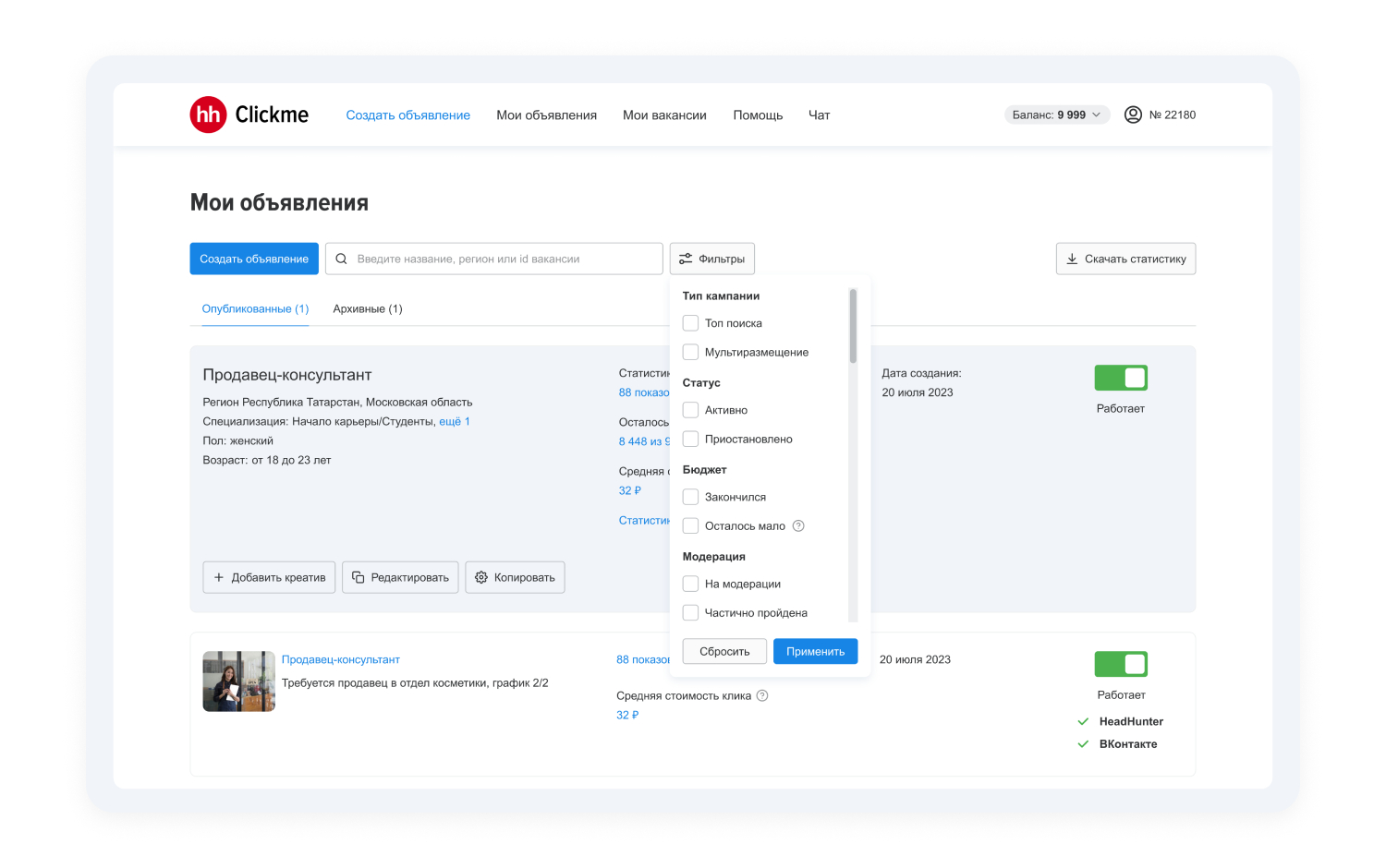 • платить только за клики от релевантных соискателей