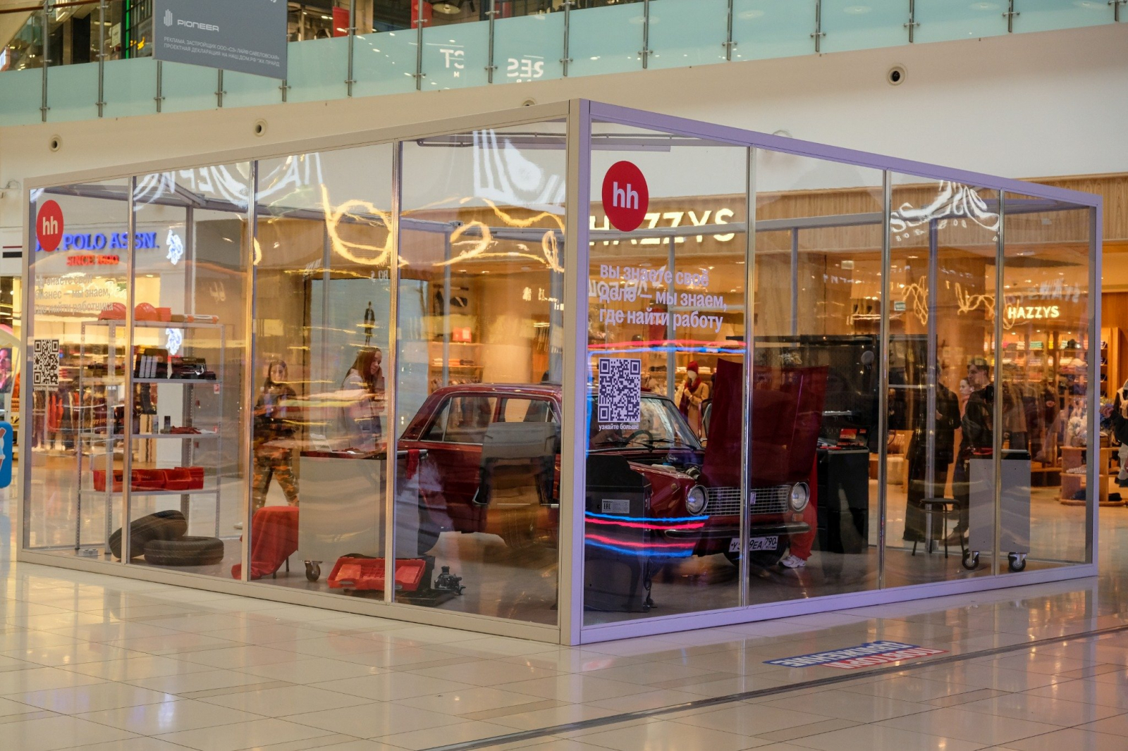 В ТЦ «Авиапарк» бренд открыл импровизированную «автомастерскую» в стеклянном кубе — офлайн-точка притяжения, где посетители встретятся с реальными представителями рабочих специальностей и смогут почувствовать себя в их роли