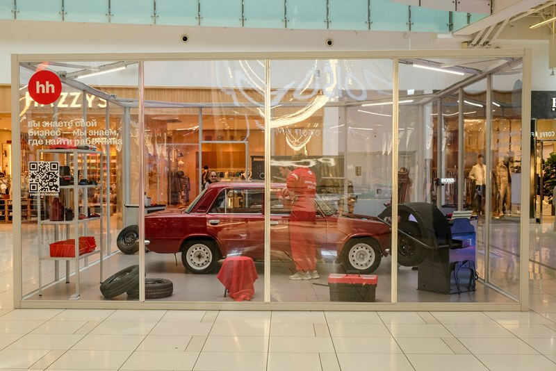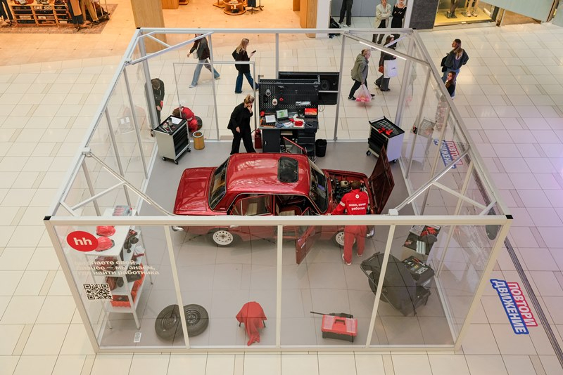 Куб hh.ru – это неожиданный формат и новая точка соприкосновения аудитории с брендом. Нам удалось воссоздать настоящую атмосферу автомастерской внутри крупнейшего торгового центра — живую, рабочую, с духом ностальгии. Проект вовлекает за счет своей реалистичности и вызывает у людей тёплый отклик и живой интерес.