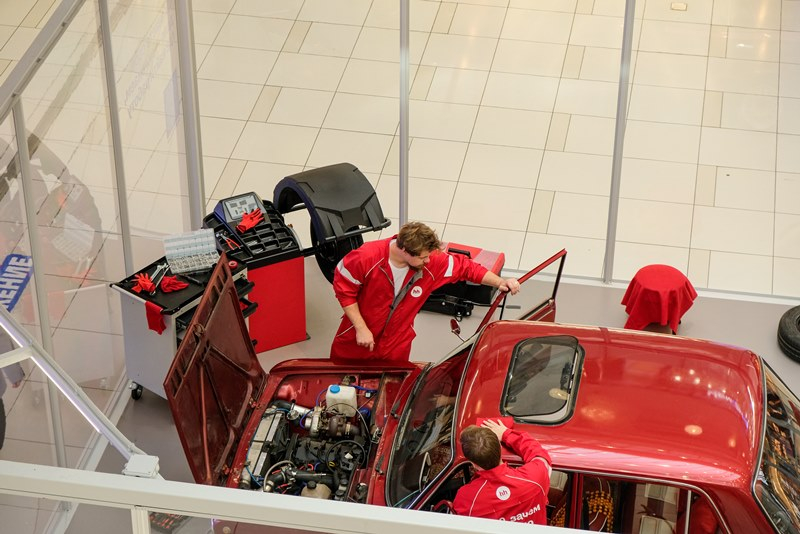 Между делом ведущий запускает короткие автоквизы, а у машины и внутри салона оборудованы фотозоны, где можно сделать кадр «как в бригаде сервиса» и забрать небольшой приз за участие. По выходным к площадке присоединяются лайфстайл и автоблогеры, которые попробуют себя в роли учеников автомастерской.
