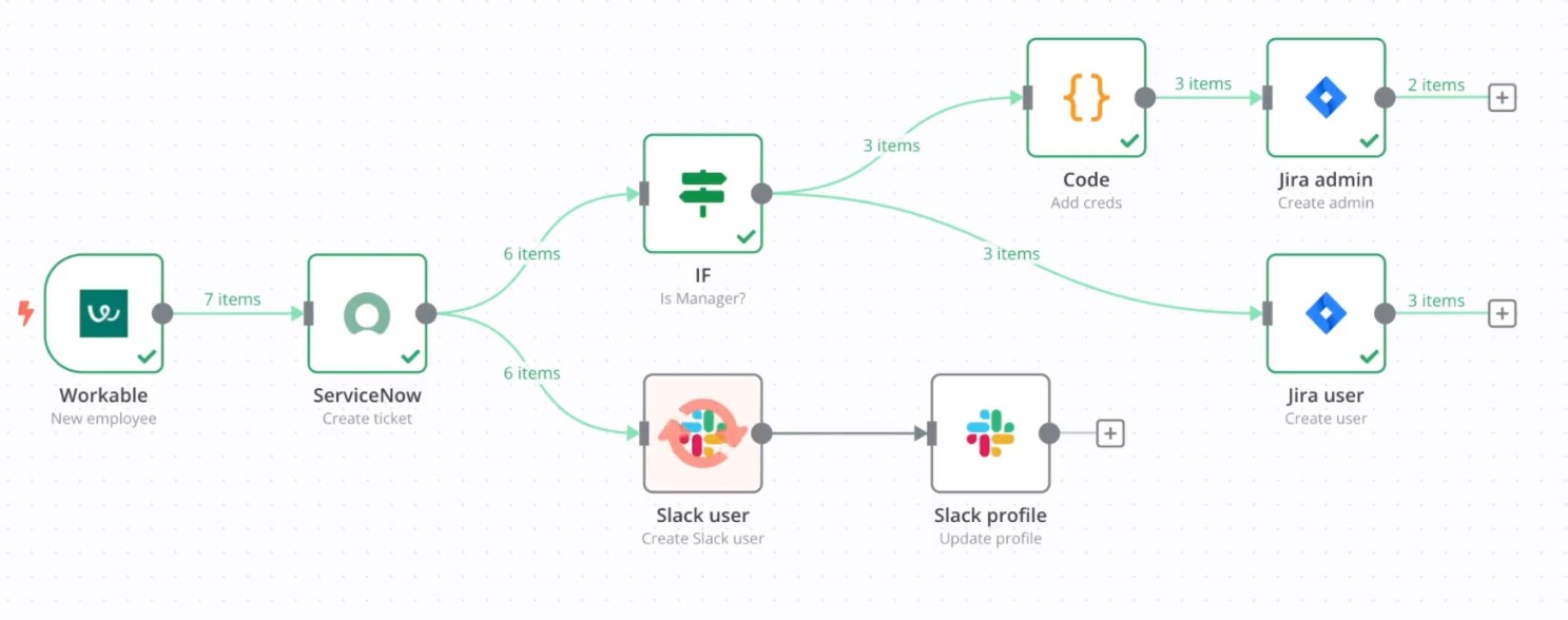 n8n — low-codeплатформа для интеграции сервисов и автоматизации рабочих процессов. Например, можно настроить связку чат-бота с OpenAI, Jira, Google Docs, Google Drive, CRM-системами.