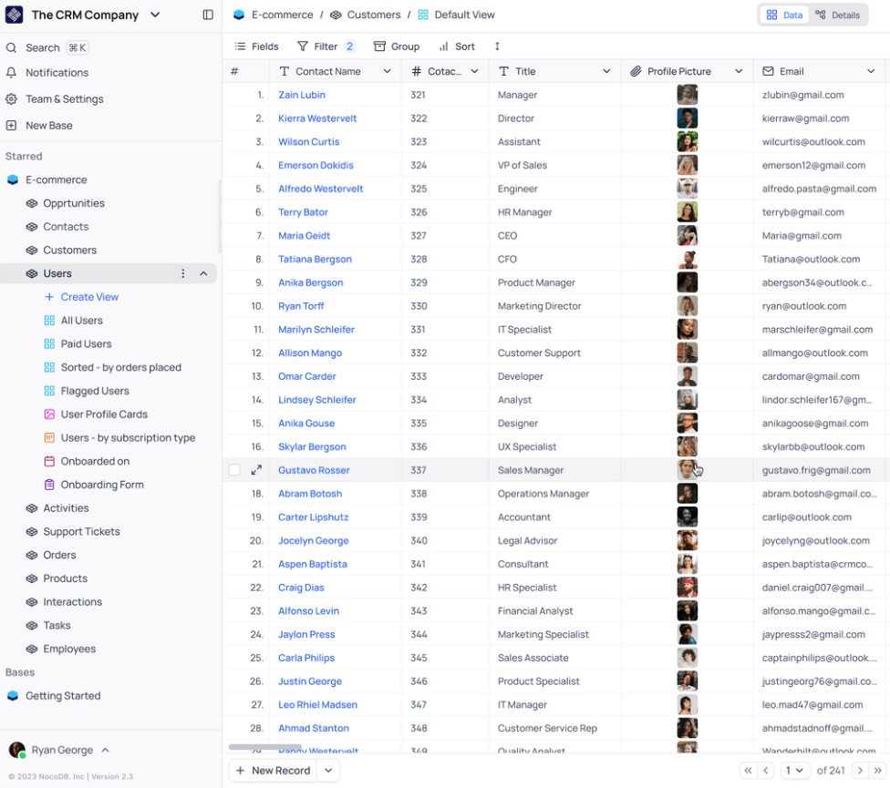 Можно использовать системы управления базами данных, например, PostgreSQL. Но, информация в них хранится в виде кода и, чтобы работать с ними, нужно иметь навыки программирования. В NocoDB данные отображаются в привычном формате таблиц и списков и управлять ими может любой пользователь.