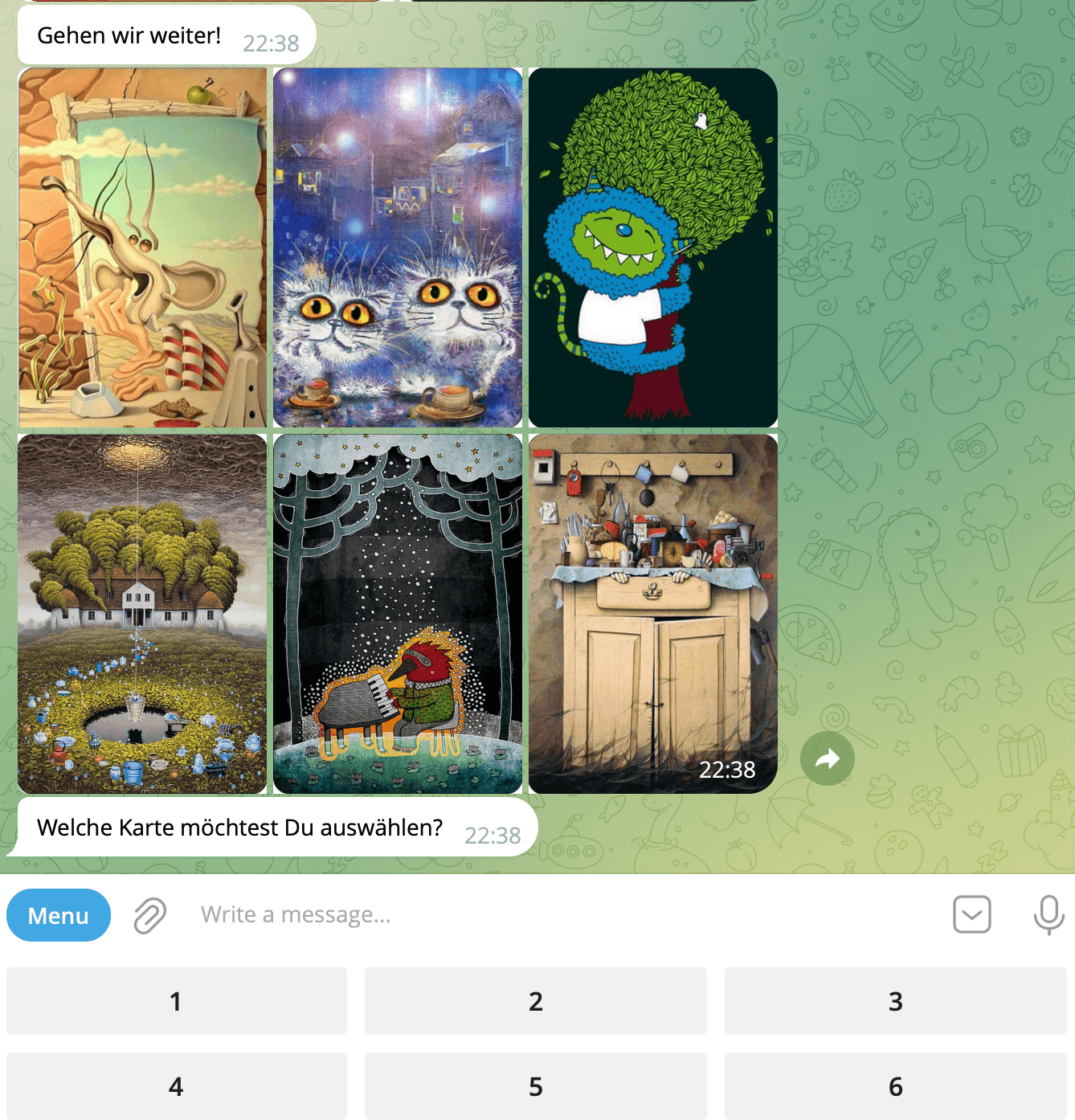 Бот для «Имаджинариума». По правилам игры участникам нужно придумывать ассоциации к карточкам с картинками и отгадывать их. Чтобы перевести «Имаджинариум» в онлайн-формат, мы использовали связку n8n → NocoDB → Smartbot.