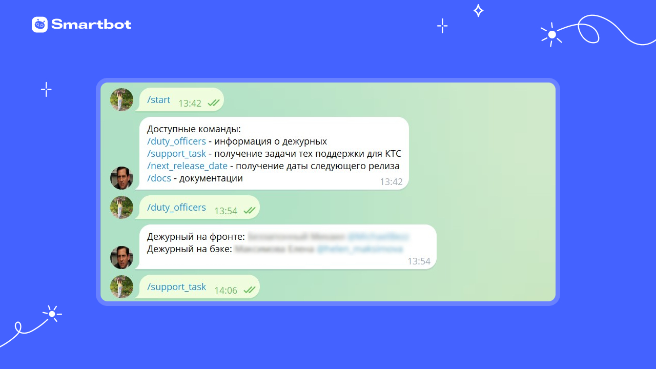 В процессе нужно постоянно общаться со смежными командами разработчиков и менеджеров. Раньше коллеги часто задавали похожие вопросы. Например, кто дежурный, когда дата следующего релиза и где посмотреть документацию.