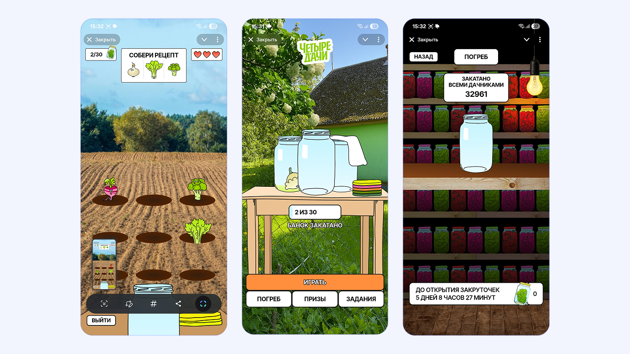 Пример удачной геймификации для узкого сегмента: телеканал «Пятница!» в конце августа запустил игровой чат-бот от шоу «Четыре дачи». В нём пользователи собирают урожай и делают закрутки.