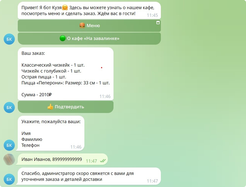Чтобы отвечать клиентам в мессенджерах быстро и в любое время, подключите чат-бота. Он отреагирует мгновенно, соберёт необходимые данные и подтвердит заказ.