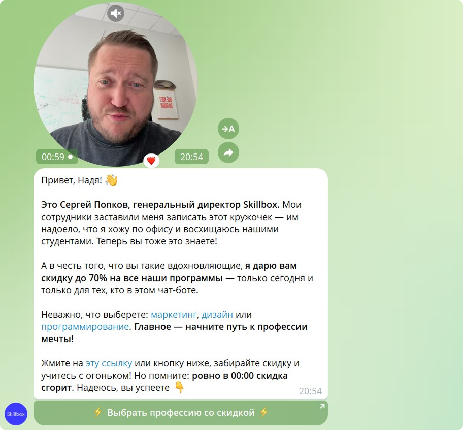 «Коммуникации в мессенджерах должны быть ненавязчивыми и комфортными, потому что пользователи воспринимают их как личное пространство. Чтобы не потерять контакт с клиентом, повысить доверие и лояльность, отвечайте быстро, пишите коротко и персонализируйте рассылки»