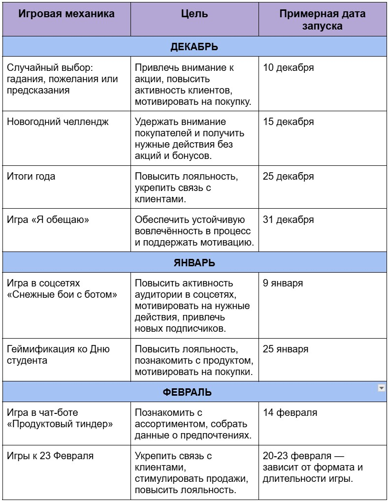 Собрали примеры геймификации для каждого месяца в удобном формате, чтобы было проще планировать активности: