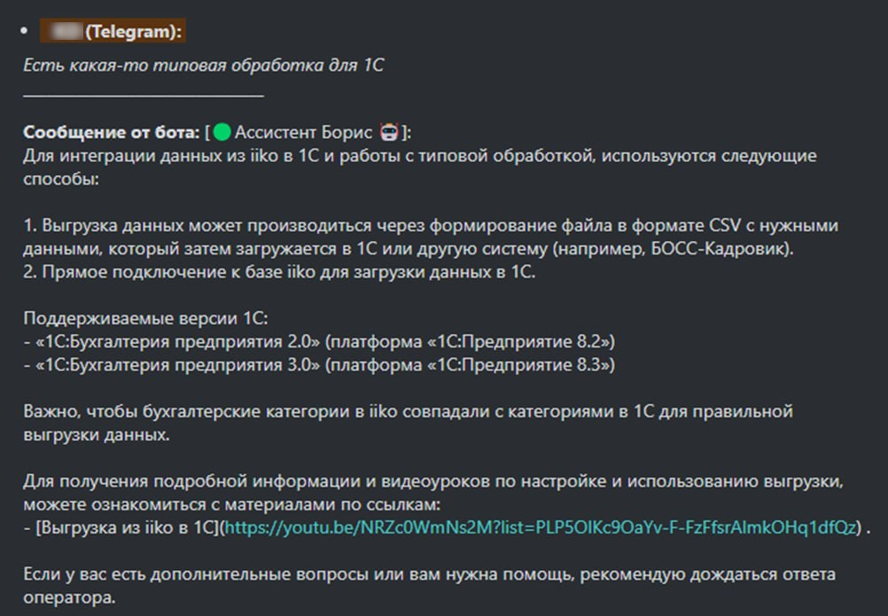 iikoService: ИИ-консультант для сложного продукта. Компания вместе с нашей командой разработала чат-бота, который помогает сотрудникам техподдержки. Он консультирует по продуктам iiko — системы автоматизации ресторанного бизнеса.