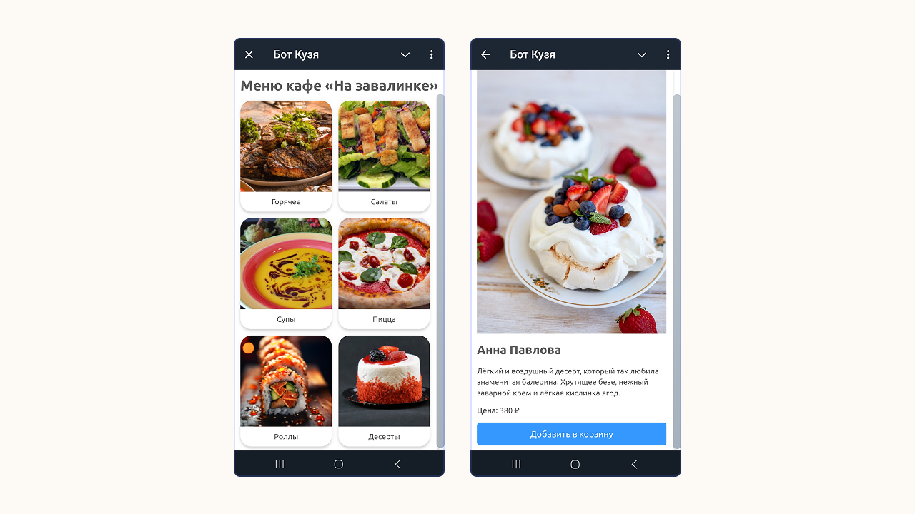 Готово! Теперь бот нашего кафе доступен пользователям в Telegram.