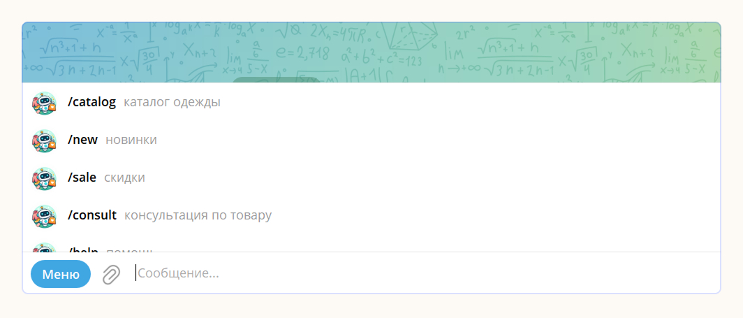 Так меню выглядит в Telegram-боте: