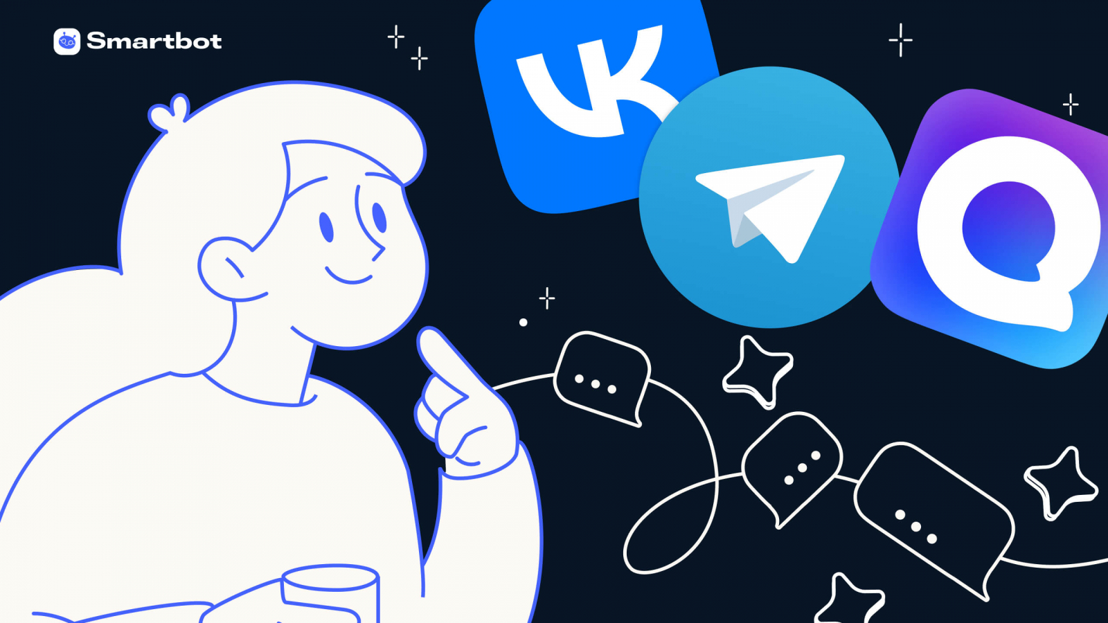 В Smartbot Pro количество каналов не ограничено — подключайте сценарий бота ко всем мессенджерам сразу и всегда оставайтесь на связи с клиентами.