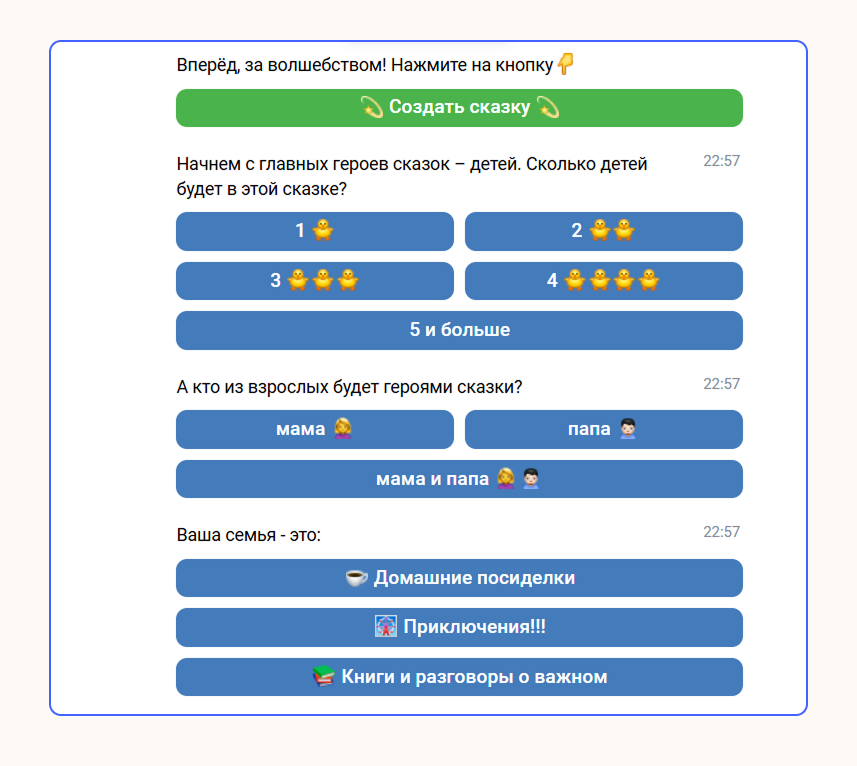 4. Адаптируйте сценарии чат-ботов. Измените формат сообщений и цепочки шагов, чтобы они подходили под другие мессенджеры. Например, Telegram позволяет добавлять больше кнопок, поэтому пользователю не нужно вводить команды вручную, как в WhatsApp*.