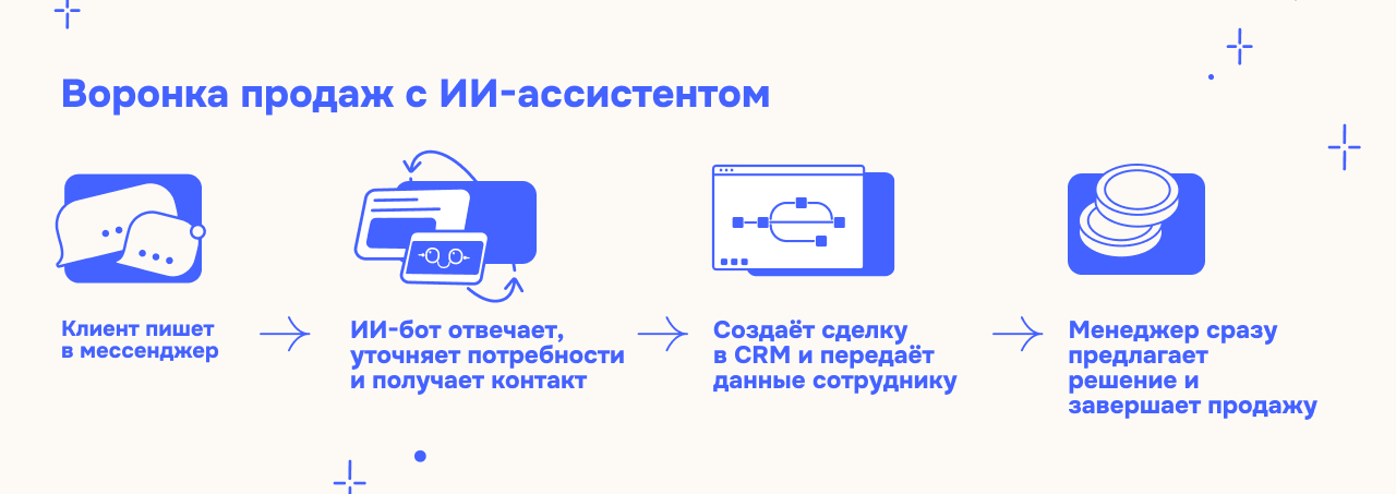 Гибридный формат сохраняет скорость на типовых этапах и добавляет гибкость там, где она действительно нужна. Такой подход повышает качество взаимодействия с клиентами и конверсию в целевое действие.