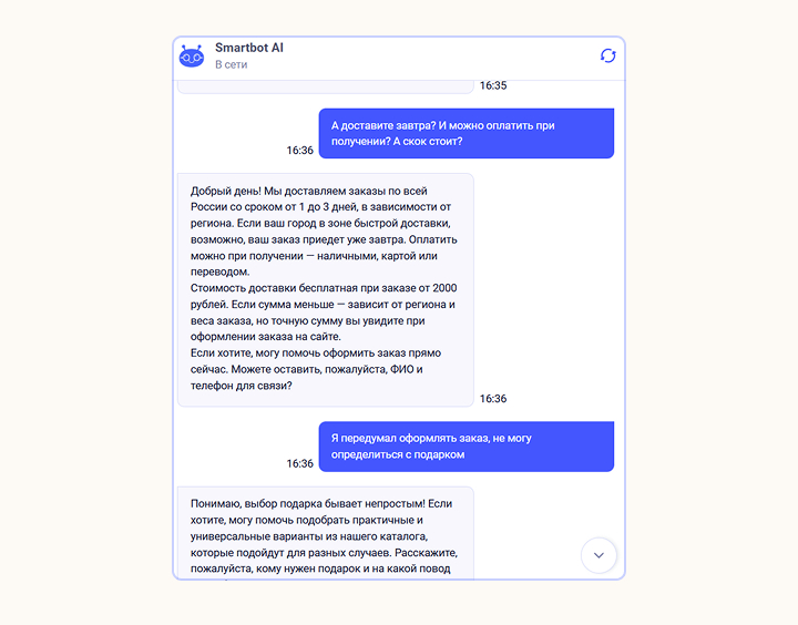 Создать ИИ-ассистента бесплатно можно в Smartbot Pro. Используйте тестовый период 7 дней, чтобы настроить своего GPT-бота для бизнеса и проверить, как он обрабатывает обращения в реальных условиях.