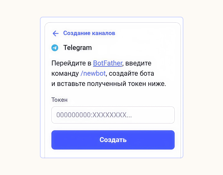 BotFather отправит токен, вставьте его в соответствующее поле в Smartbot Pro.
