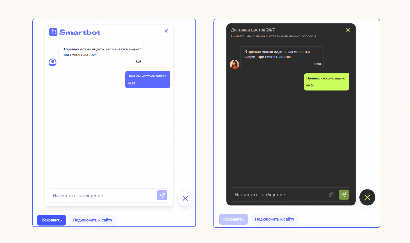 В окне превью вы увидите, как меняется онлайн-чат.