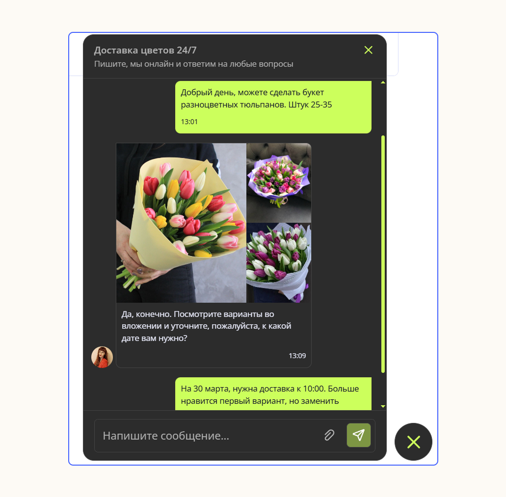 Быстрая и удобная коммуникация. Клиент задаёт вопрос в один клик во время просмотра товара или услуги. Не нужно искать email или телефон — в едином окне на сайте можно обсудить детали с менеджером и сразу оформить заказ. Это ускоряет коммуникацию и экономит время покупателя.