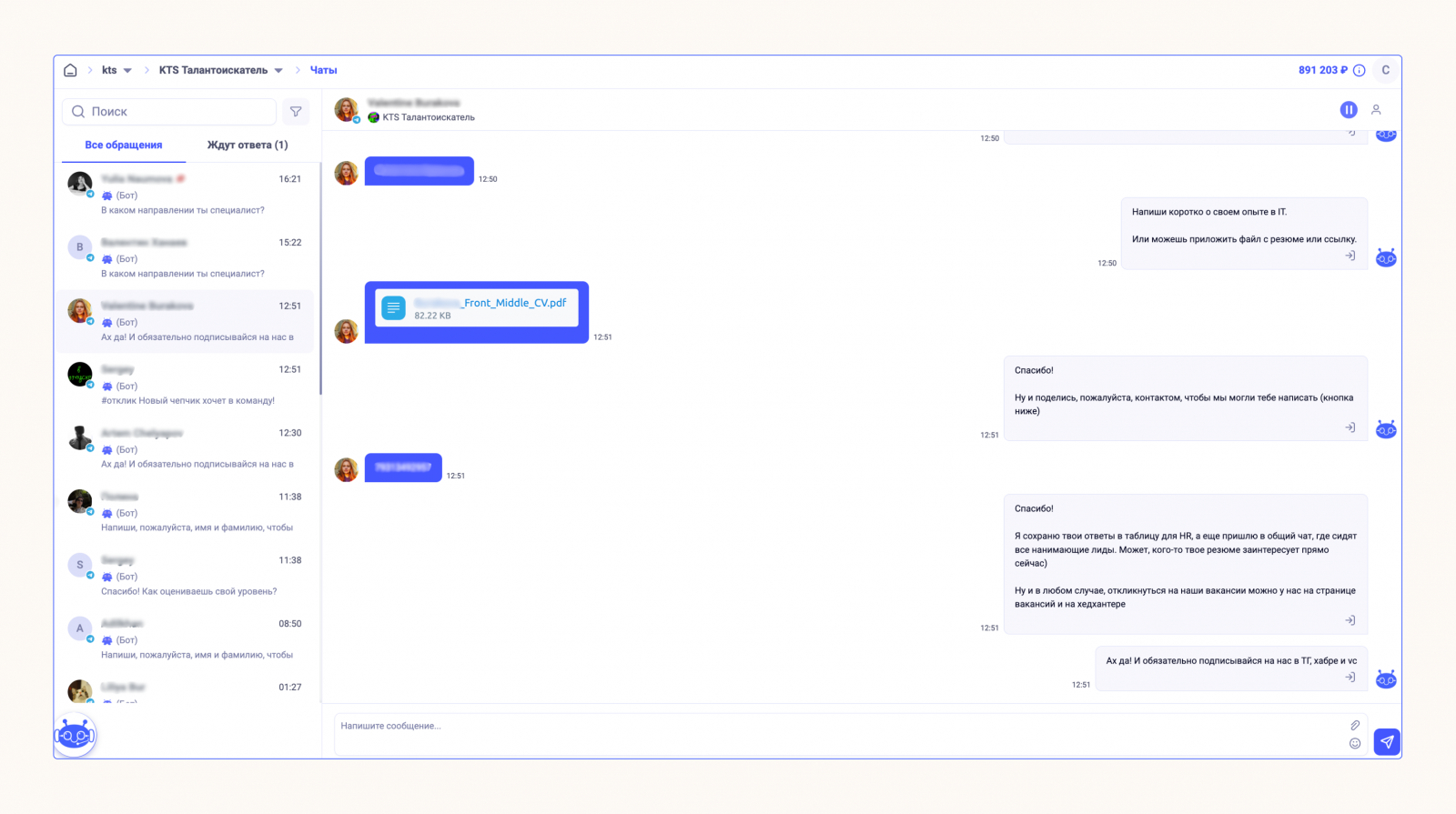 Диалоги с пользователями собираются в разделе «Чаты» Smartbot Pro. Вы можете отвечать клиентам в едином интерфейсе без лишних переключений между вкладками.