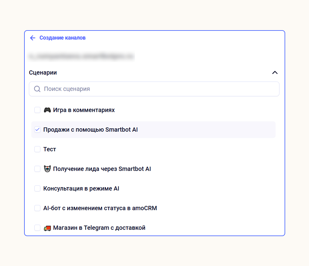Выберите подходящий сценарий. Например, в шаблоне «Получение лида через Smartbot AI» настроена такая логика: бот ответит на вопросы клиентов, узнает контакты, внесёт их в Google‑таблицу и отправит уведомление менеджеру.
