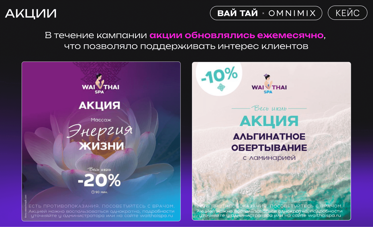 Хотите узнать, как одна рекламная кампания смогла превзойти все ожидания и привлечь тысячи новых клиентов? OMNIMIX раскрывает секреты стратегии, которая принесла сети массажных салонов «Вай Тай» более 613 миллионов показов и увеличила онлайн-записи на 102%.