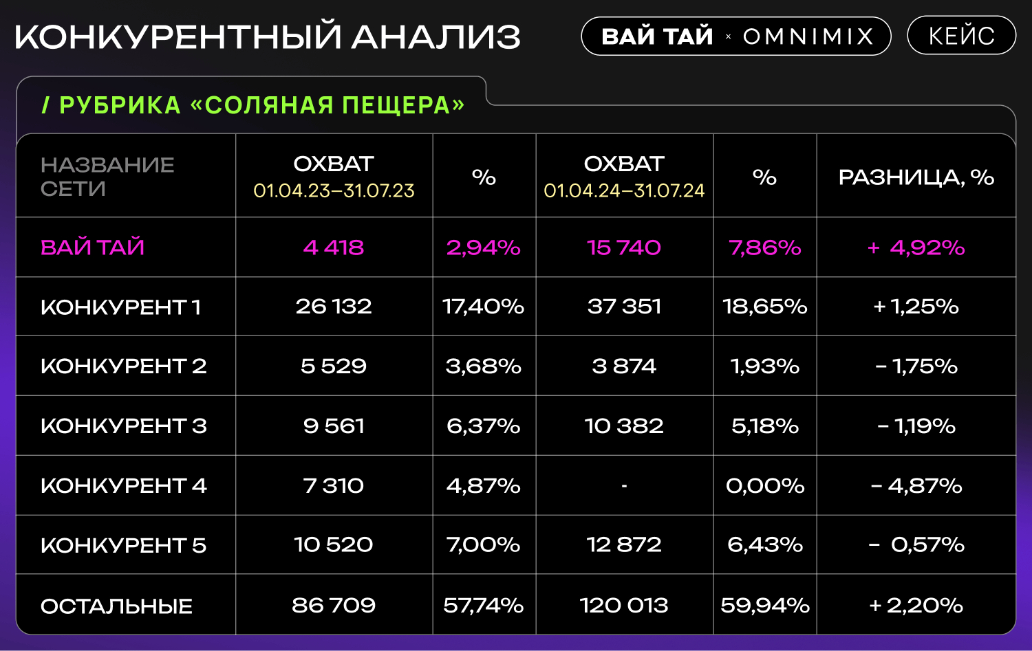 Остальные конкуренты либо потеряли свои позиции, либо остались на прежнем уровне, что указывает на то, что «Вай Тай» смогла отвоевать часть их рынка.