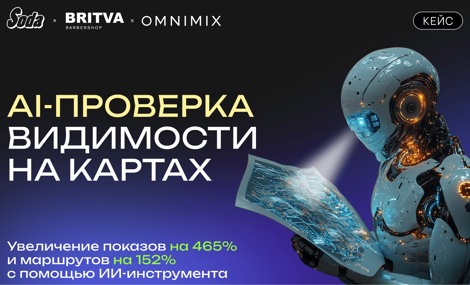 Мы давно работаем с сетями салонов красоты Soda и барбершопов Britva, которые активно используют геоперформанс-рекламу в Яндекс Картах для привлечения новых клиентов и удержания постоянных. У Soda 82 филиалов, у Britva — 129. Видимость филиалов на Картах играет ключевую роль в маркетинговой стратегии, ведь потеря видимости напрямую сказывается на доходах и взаимоотношениях с клиентами.