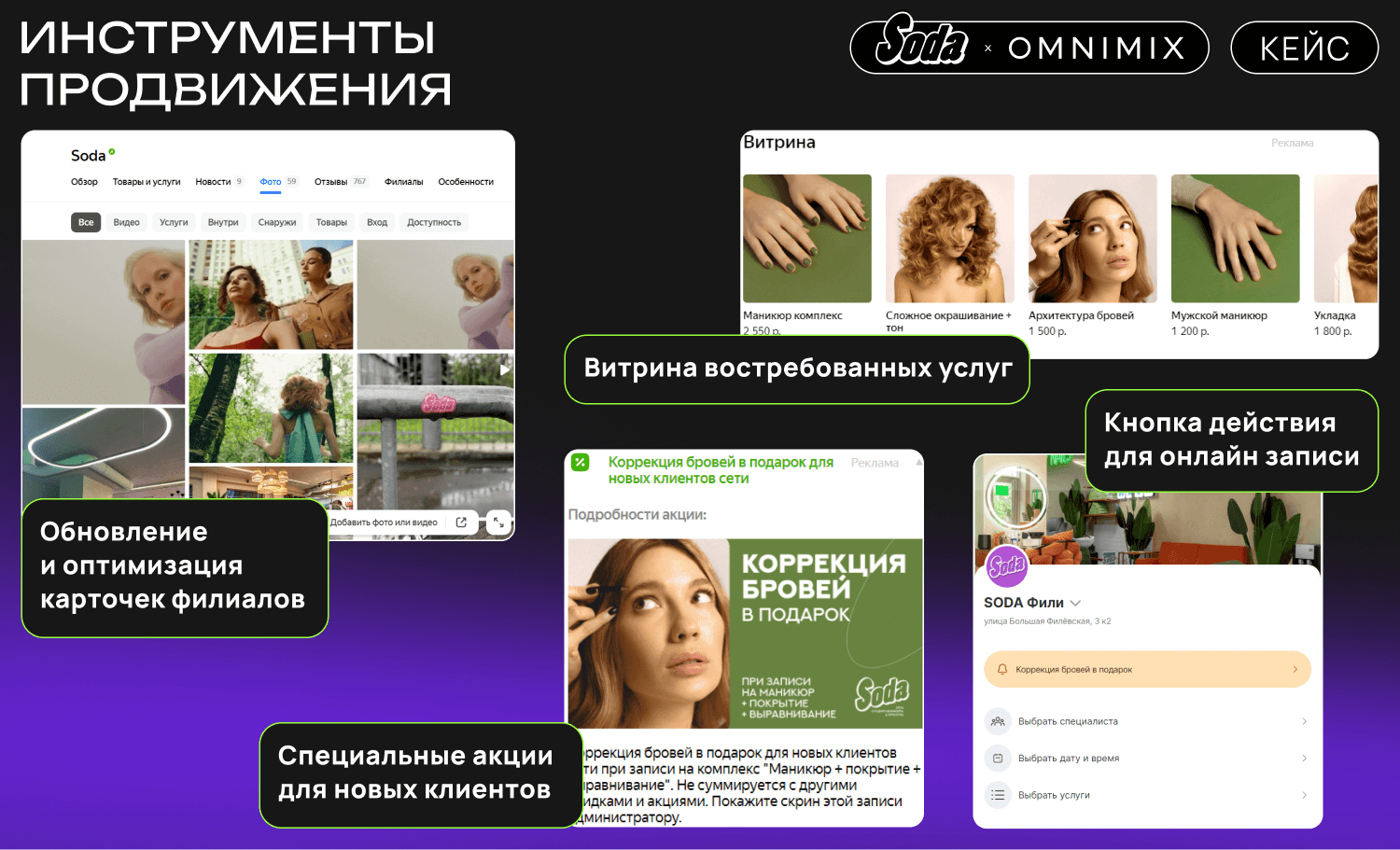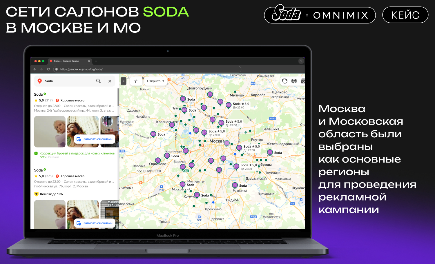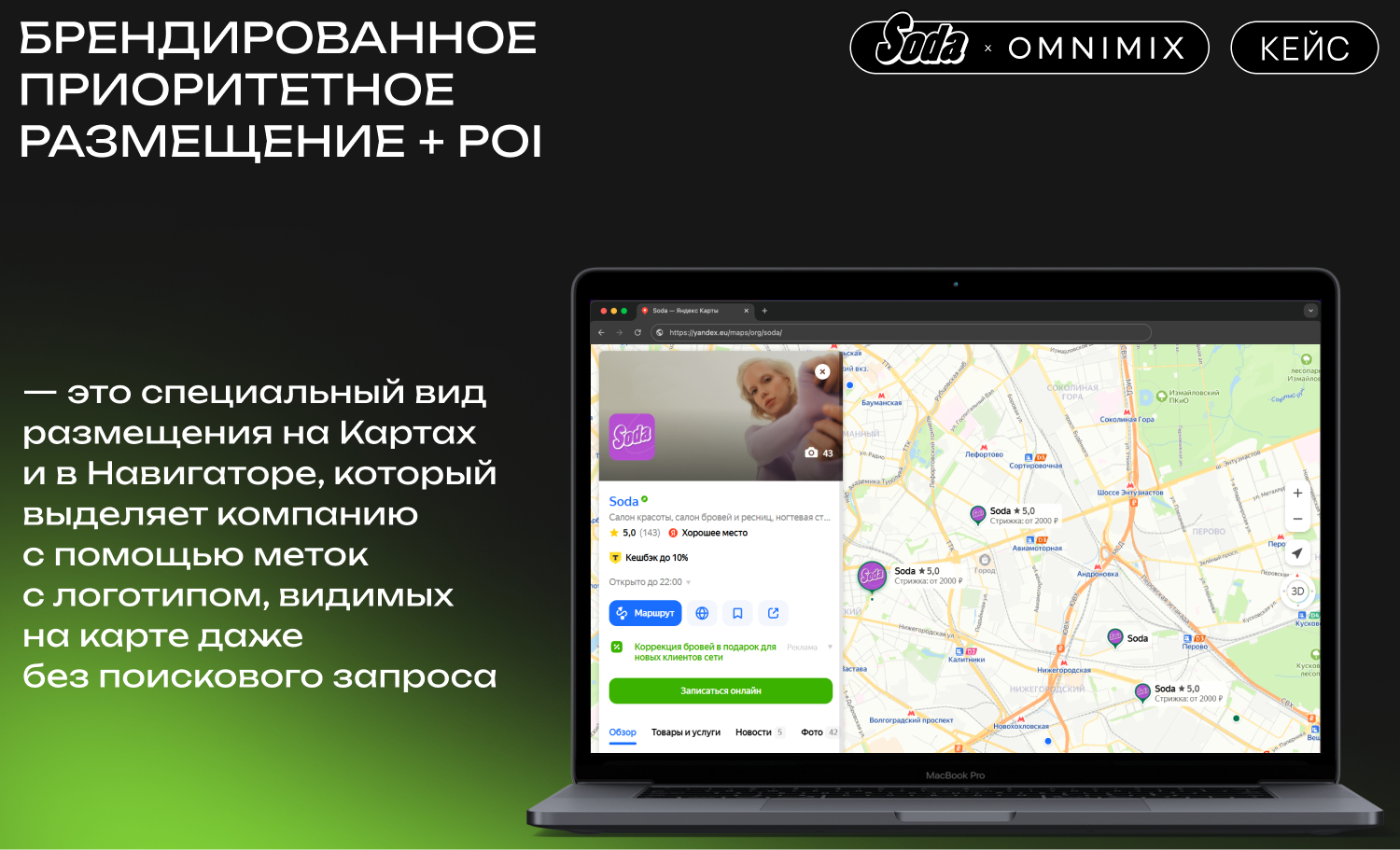 В мире красоты, где каждая деталь имеет значение, особенно важно не просто привлекать новых клиентов, но и делать это эффективно. Как сеть салонов красоты Soda смогла увеличить посещаемость своих филиалов на 39%? Секрет в грамотной стратегии, разработанной командой digital-агентства OMNIMIX. В этом кейсе мы раскроем все детали кампании, от анализа целевой аудитории до впечатляющих результатов, достигнутых с помощью Яндекс Карт.