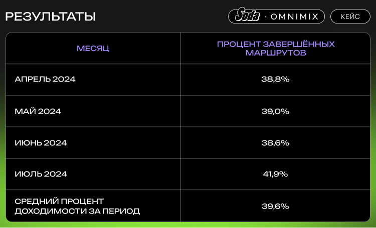 Рост доходимости пользователей до филиалов на протяжении всей кампании показывает, что стратегия была не только успешной в привлечении внимания, но и в стимулировании реальных визитов в салоны Soda.