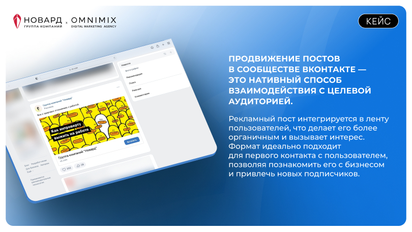 Каждый день сообщество продолжает расти, посты набирают сотни лайков, и этот успех достигнут благодаря точной работе с контентом и аудиторией. Кейс ГК «Новард» доказывает: при верной стратегии и адаптированном контенте ВКонтакте может стать достойной заменой для корпоративных сообществ, даже если аудитория узкая и специфичная.