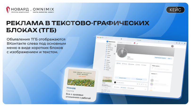 Переход ВКонтакте для ГК «Новард» потребовал нестандартного подхода к поиску целевой аудитории, ведь привычная площадка и ее возможности уже были недоступны. Нам пришлось начать с нуля и выстраивать таргетинг так, чтобы привлечь настоящих энтузиастов карьеры и саморазвития, которые не просто подпишутся, но и будут активно участвовать в жизни сообщества.